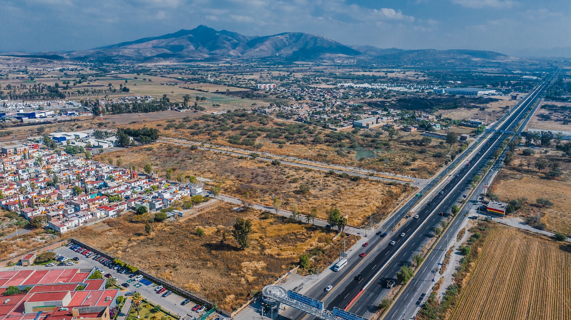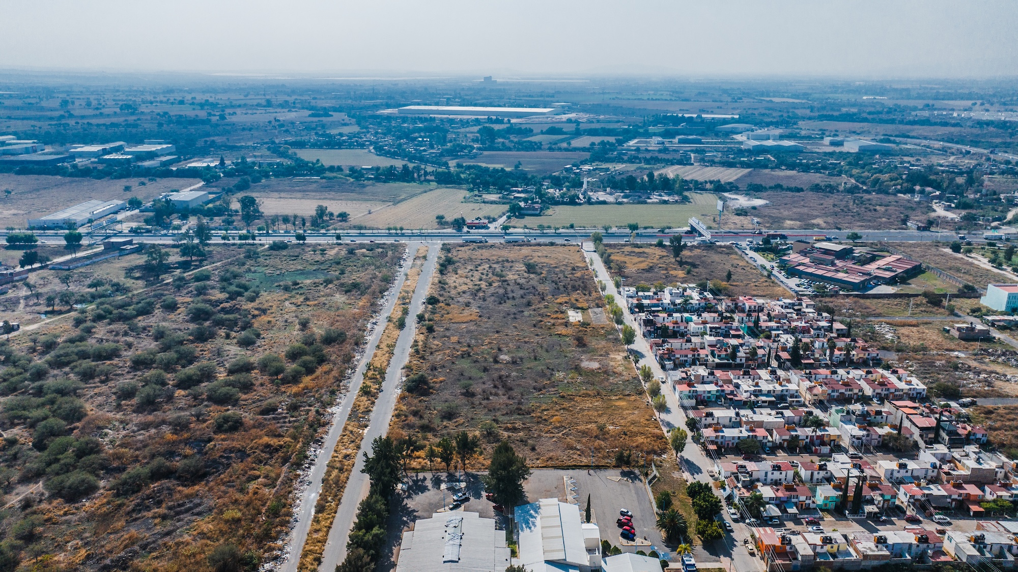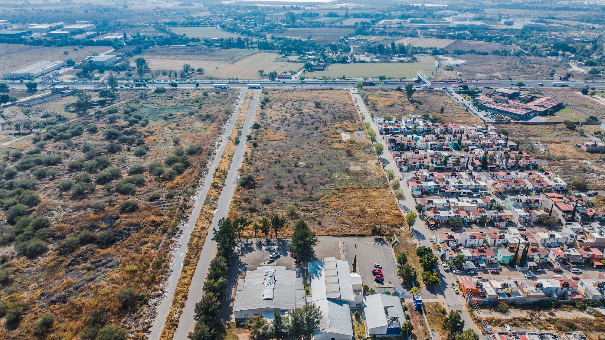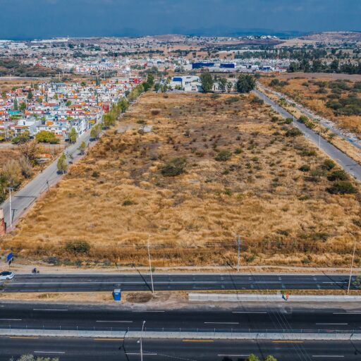Terreno rectangular de 35,607 m² con frente de carretera federal, ubicado en la zona de mayor crecimiento del Bajío. A 10 minutos del Aeropuerto Internacional y del complejo industrial Puerto Interior. Lotificación aprobada y lista para desarrollar.